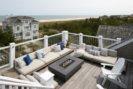 This home was built for entertaining! Positioned just one lot from the beach on a previously empty plot of land, the four-story, 6,700-square-foot home features ocean views throughout. Interior amenities include eight bedrooms, eight bathrooms, a gourmet kitchen, a beach prep room, two bunk rooms (one is for adults), a bar, a movie room, and an elevator. A lower level indoor/outdoor kitchen leads to a hot tub, while a rooftop deck provides another spot to enjoy the scenery.