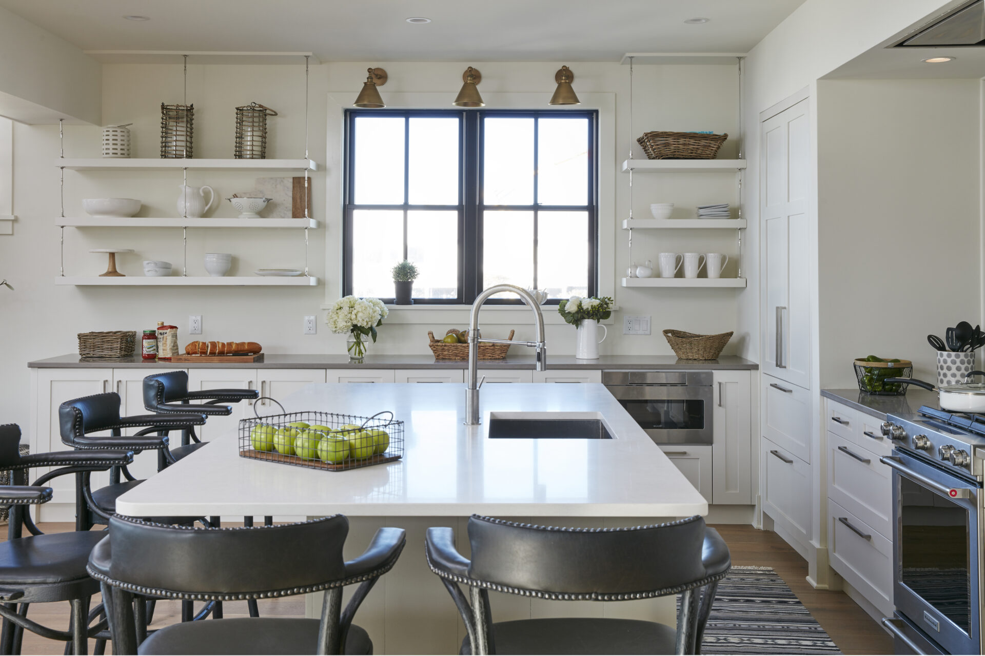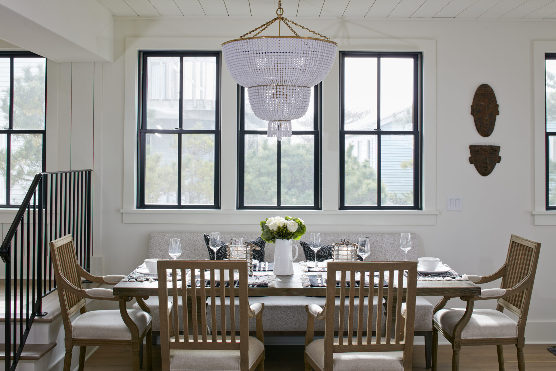 The layout and design details of this 3,500-square-foot home take advantage of true indoor/outdoor living. A large screened-in porch directly off the great room offers expansive views of the bay, while a custom screen made from IPE wood provides privacy on one side.