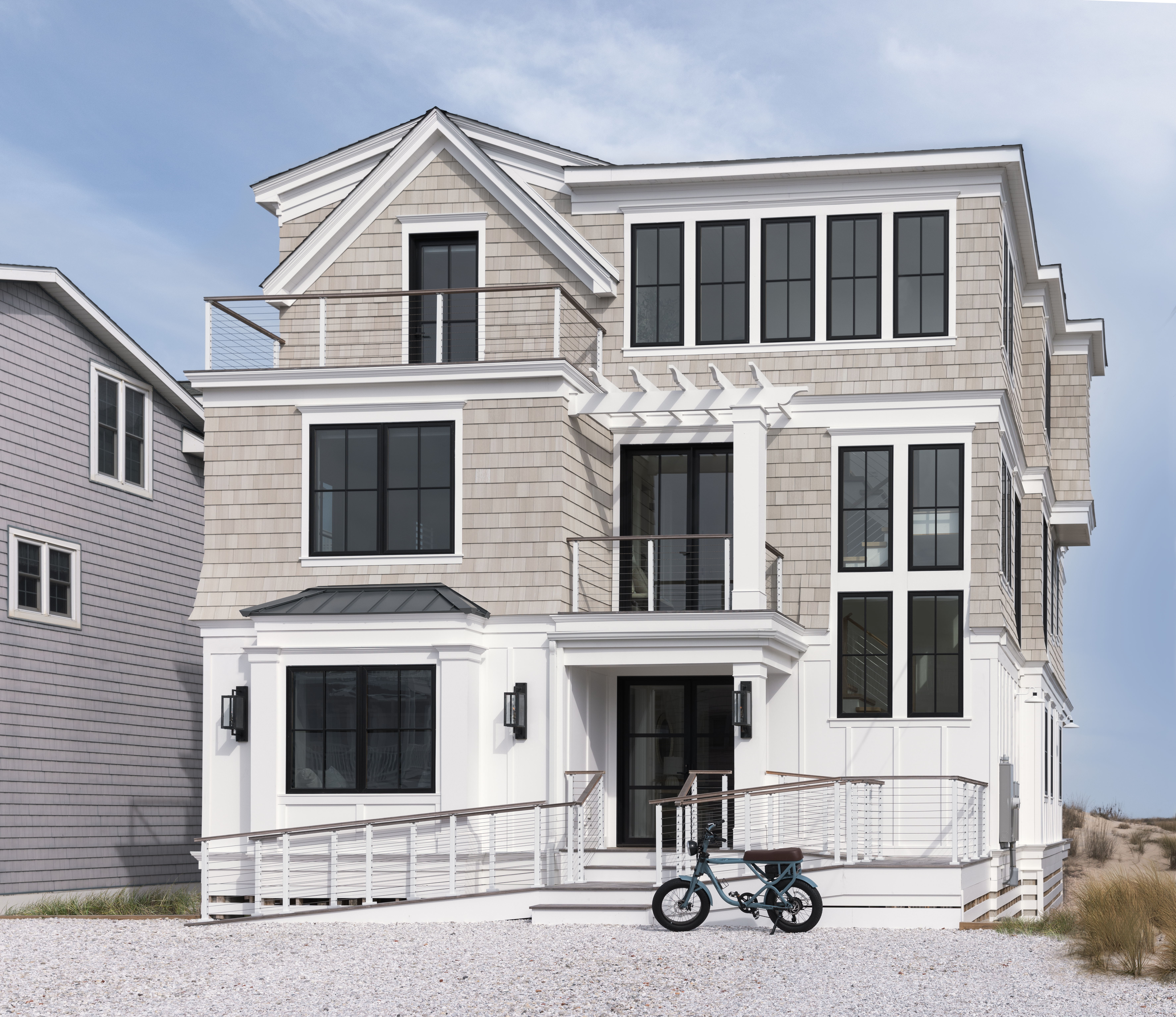 Since we are building on the oceanfront, durability was key and take that responsibility seriously. We had to navigate strict building codes, FEMA and DNREC regulations, and this home exceeds the Hurricane Zone 3 requirements, using steel framing and materials rated to withstand winds up to 130 MPH. The exterior materials were selected to withstand the harsh oceanfront environment, including NuCedar siding, IPE decking, and lighting built to withstand salt air and water. We know the Kinneys can rest easy, knowing their home is well-protected.