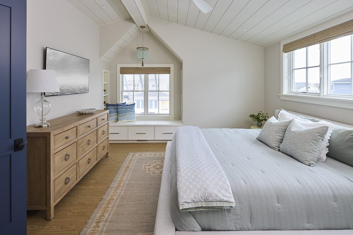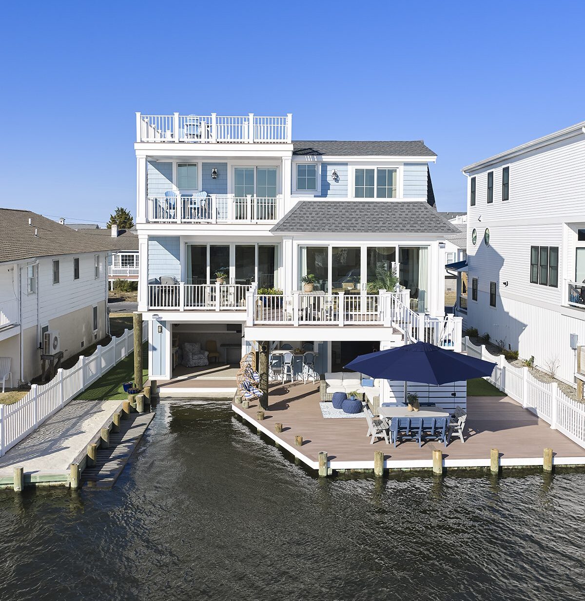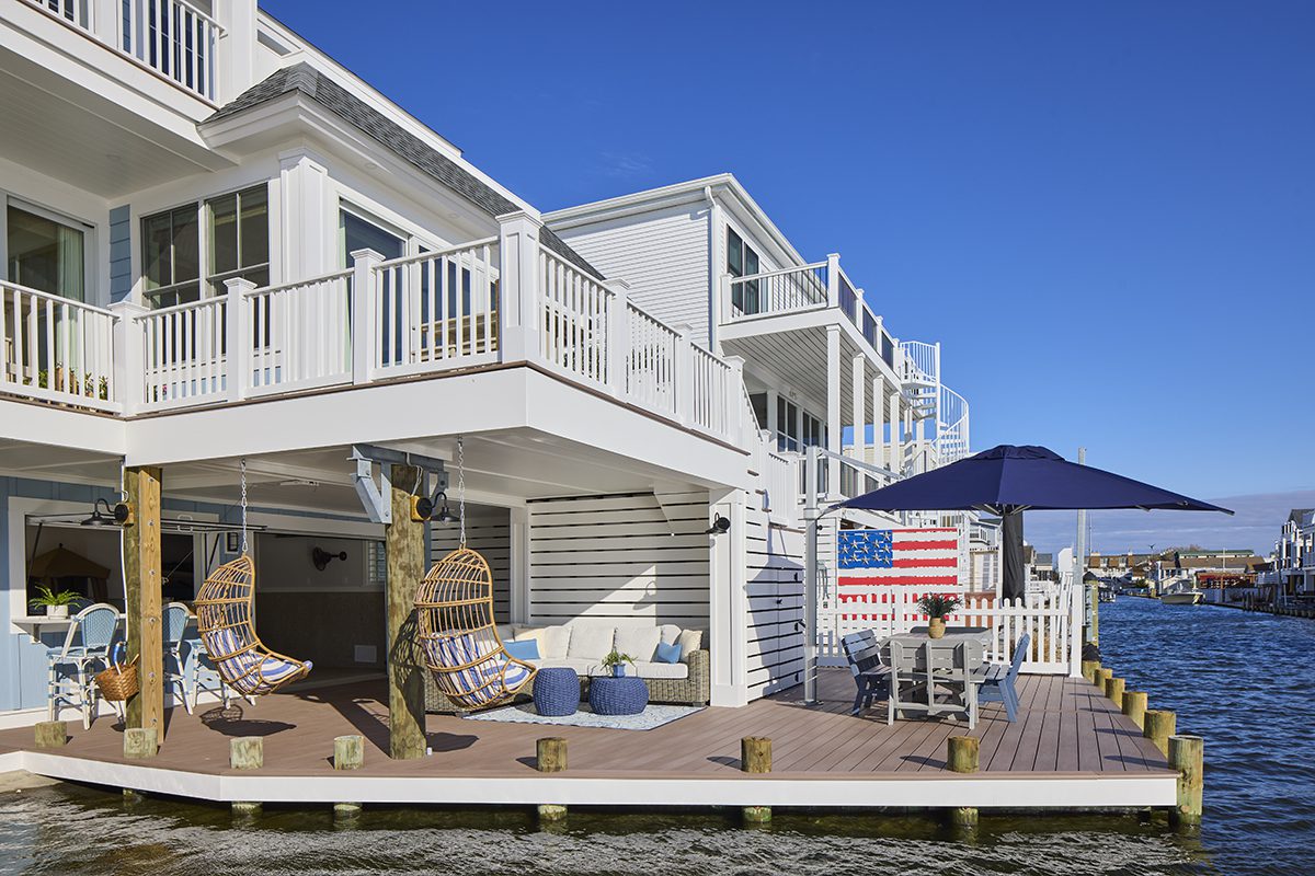 The goal of this home was to capture the charm of coastal living, fill it with light, and make it a place the whole family and all their guests would never want to leave. A rounded front door. Bahama shutters. A waterfront deck with a pass-through bar. A rooftop deck with amazing sunset views. A custom bunk room that kids will claim for the next twenty years.