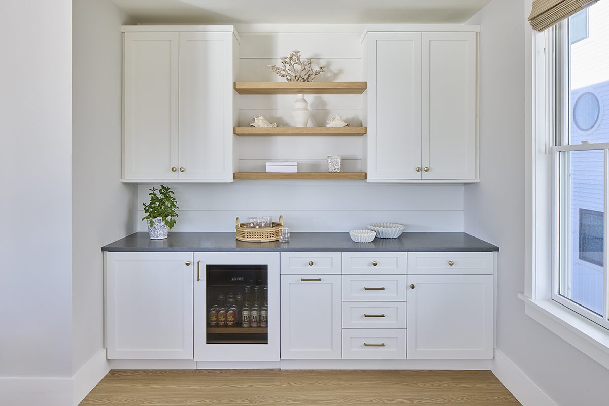 Bar Cabinets: Crystal Cabinets – Regent Shaker Door, Benjamin Moore White Dove
