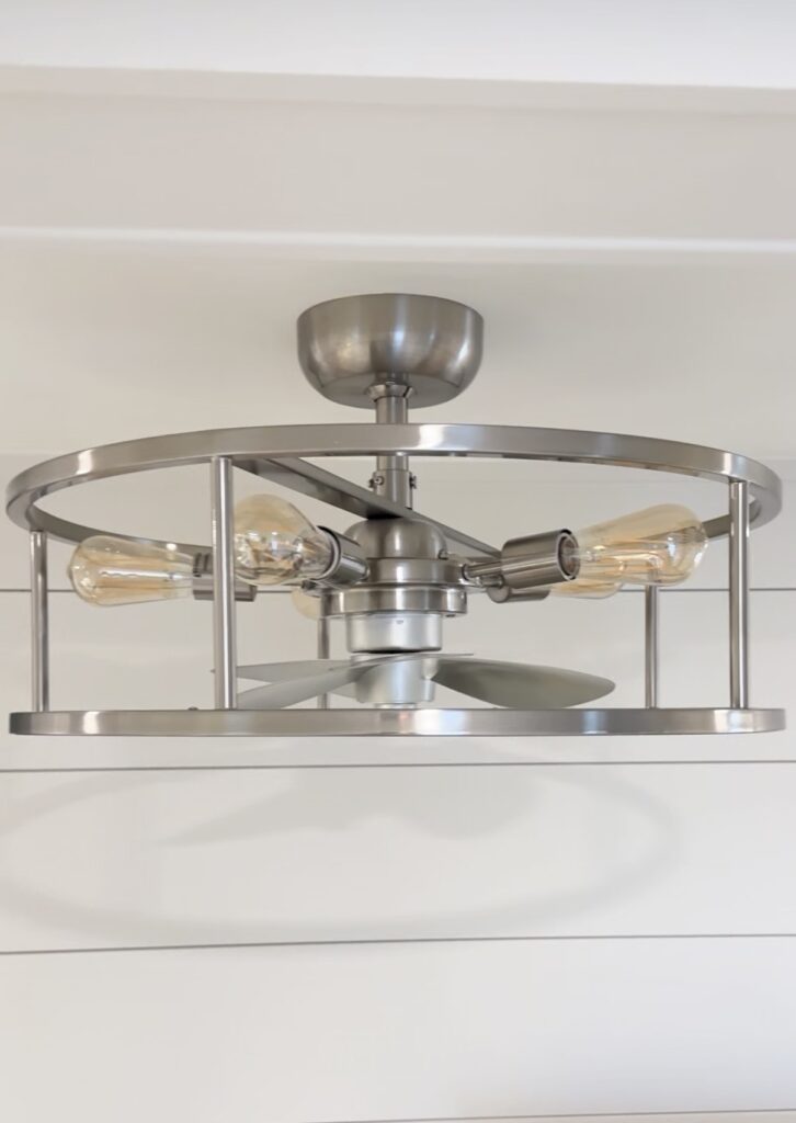 We were limited in ceiling space, so this combo light and fan does the trick. This is a great light for small spaces and comes in multiple finishes.