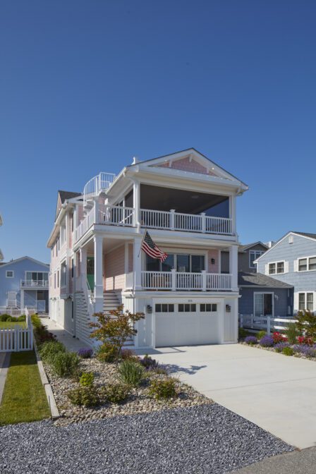 Beach houses are all about fun and this one immediately stands out and packs a punch with its vibrant pink exterior and bold green front door. Â This unique Marnie Custom Home exudes unmistakable character in the Town of Bethany Beach with 3,112 square feet of living space and abundant style on every level.