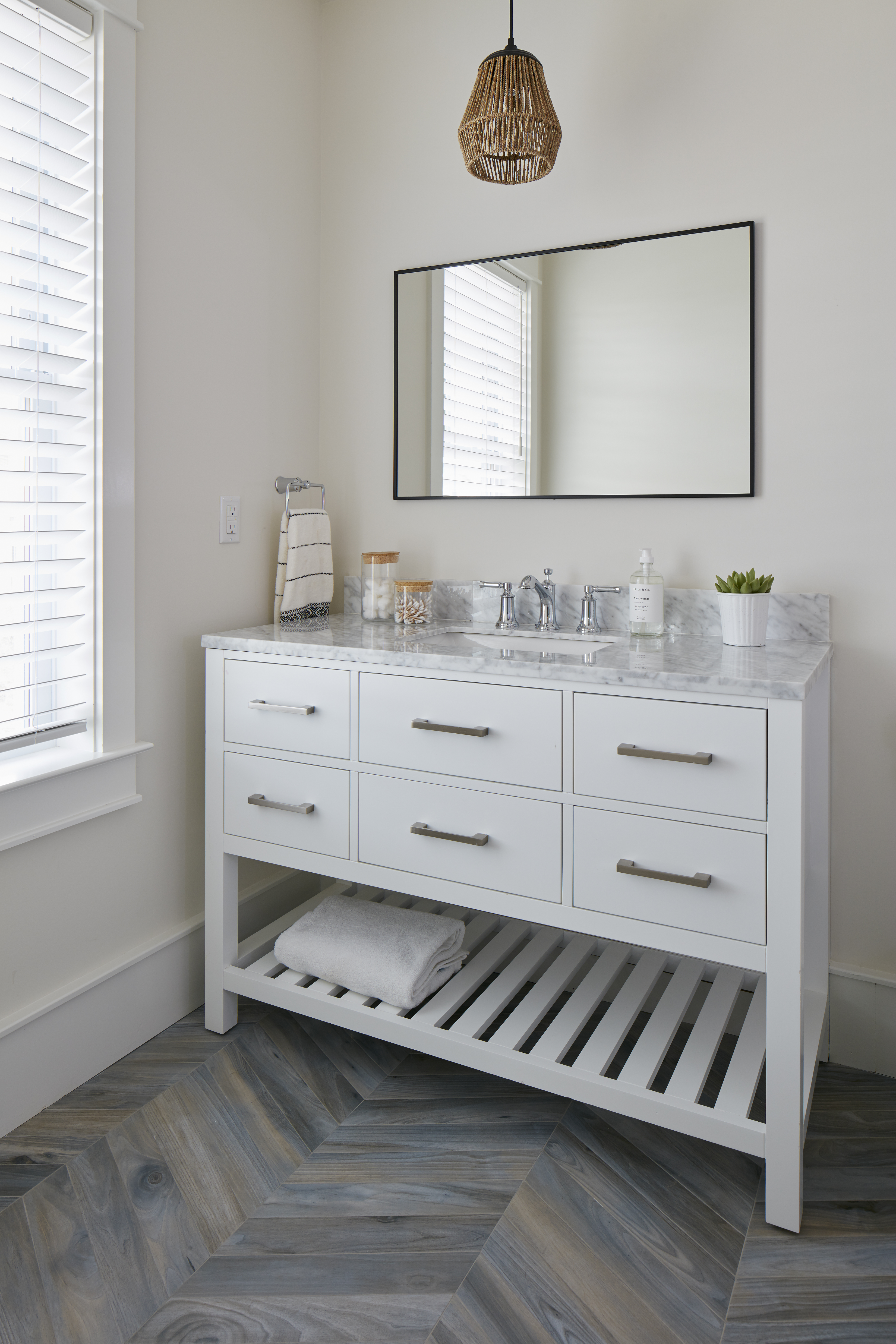 We utilized each floor’s space design to provide plenty of options to relax, entertain and enjoy beach life. The under-the-stair nook near the entry adds an extra hangout option and a perfect place to cozy up with a book.