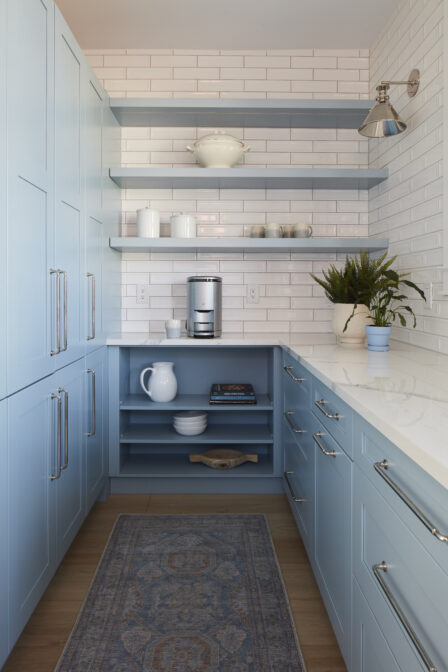 With the ocean serving as the backdrop, the design aesthetic here is light, airy, and effortlessly chic, evoking an instant sense of relaxation. The main level serves as the heart of the home, offering uninterrupted views of the ocean that give a wow factor upon entry. The bright white kitchen is a focal point, accented by a striking Santorini Blue island, bar, and pantry. Multi-slide floor-to-ceiling doors seamlessly blend indoor and outdoor living spaces, inviting you to enjoy the coastal breeze and soak up the sun.