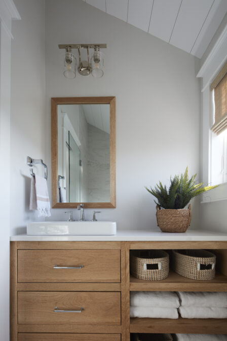 Signature custom millwork graces every corner, from a custom bed and nightstand to intricate wood wall paneling, ceiling beams, built-ins, and of course bunk beds, showcasing the meticulous craftsmanship synonymous with Marnie Custom Homes.