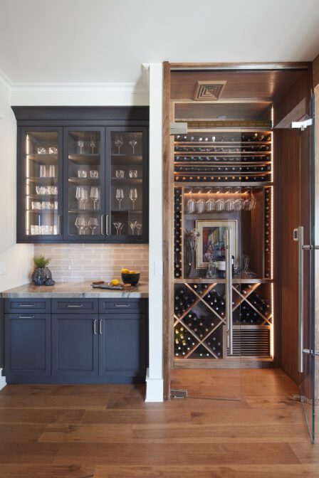 As you enter, the dramatic two-story foyer tower welcomes you and sets the tone for the entire home. The exquisite ceiling design floods the space with natural light, providing 360-degree views of the beautiful surroundings of Fenwick Island. The thoughtful design, centered around an open concept, seamlessly connects the main living area to the screened-in porch, facilitating the effortless flow between indoor and outdoor living. Vintage hickory hardwood flooring extends throughout, complemented by a conditioned wine cellar and bar.